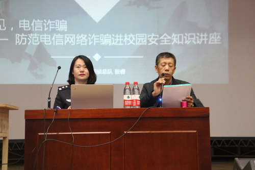 本次讲座由黑龙江省公安厅刑侦总队反诈骗中心张睿警官担任主讲。张睿警官先从介绍个人密码的安全问题展开此次讲座,以生动的语言和真实的案例详细讲述了什么是电信网络诈骗、如何甄别电信网络诈骗、电信网络诈骗的起源、诈骗的类型、防范诈骗的方法、公安机关采取的应对措施、重点讲述了国内诈骗份子主要分布的重灾区域以及他们的各种诈骗手段和特点,又向大家传授了一些自我防范措施,并号召同学们一起加入反诈骗志愿者队伍,为预防电信网络诈骗尽自己的一份力量。