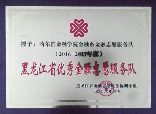 金融系金融志愿服务队获黑龙江省优秀金融志愿服务队