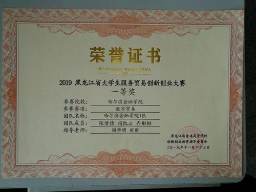 金融系学生张倩倩等获黑龙江省大学生服务贸易创新大赛一等奖
