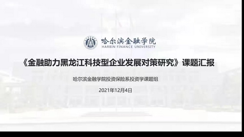 课题组成员刘金波、姜睿老师分别从项目研究完成过程、项目调研情况和项目研究内容等方面做了详细汇报。课题研究过程中课题组成员付出了艰辛的努力,得到了学院、省地方金融监督管理局和哈尔滨新区高新金融企业的大力支持,取得了富有成效的研究成果。