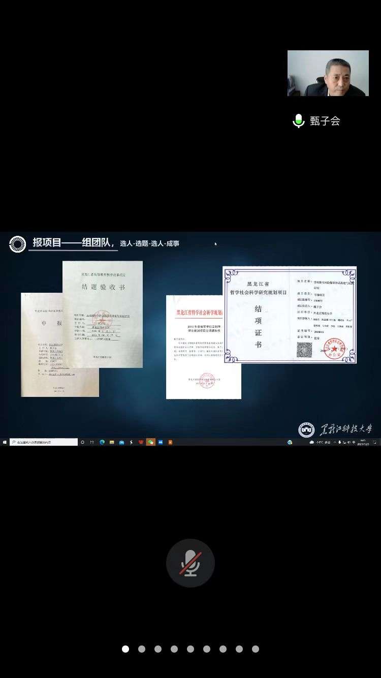 在学习贯彻习近平新时代中国特色社会主义思想和全国教育大会会议精神的时代背景下,为推动我院体育指导思想和教育理念的转化,促进体育教科研的进一步发展。2021年12月3日,应体育教研部邀请,黑龙江科技大学体育部主任甄子会教授做客金苑讲坛,为老师们带来题为《新时代高校体育教师工作的现实性思考》的专题讲座。此次讲座由体育教研部副主任许宁主持,全体教师腾讯会议线上参加。