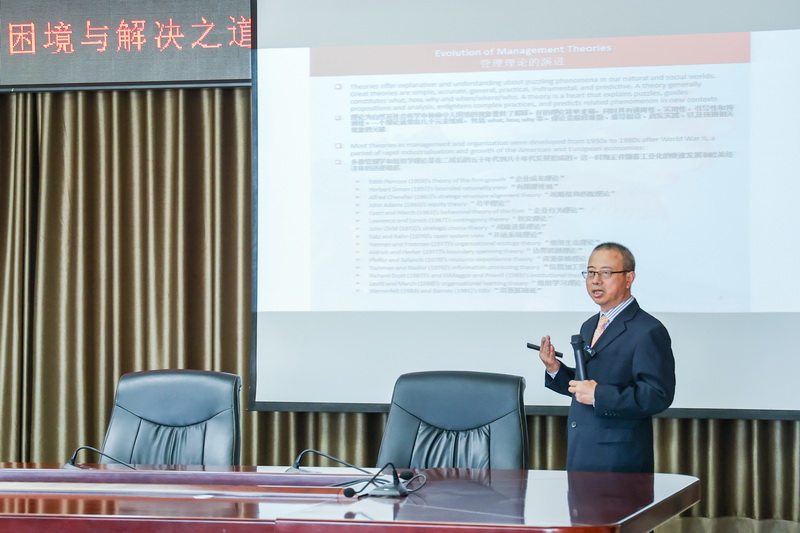 首场报告中,李元旭教授以“管理理论的发展、困境与解决之道”为题,系统梳理了管理理论的发展脉络,深入剖析了当前理论研究所面临的现实困境,并创造性地提出了未来发展的路径与方向。本场报告逻辑严密、层层深入,为在场青年教师带来了一场富有深度的思辨体验,显著提升了对管理学理论的认知水平和批判性思考能力。